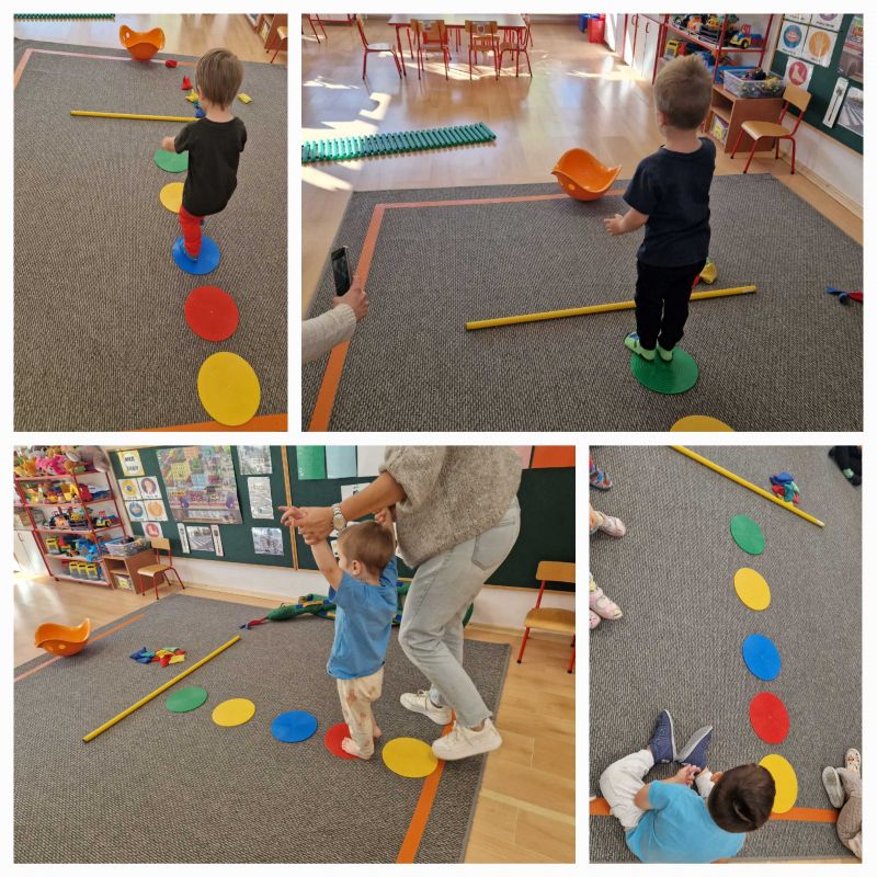 Był to miesiąc pełen emocji i nowych doświadczeń, podczas którego poznawaliśmy się, naszą salę, zabawki i ustalaliśmy wspólne zasady. Uczyliśmy się chodzić przy pomocy "węża", obserwując najbliższą okolicę, przyrodę. Odbyliśmy pierwsze spacery na pobliskie skrzyżowanie i do lasu.