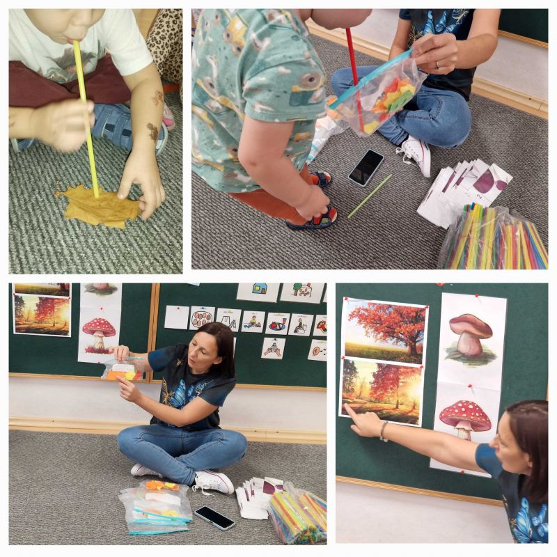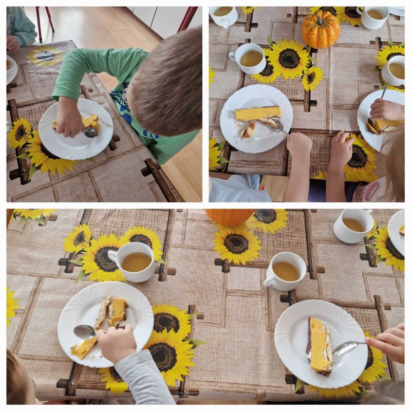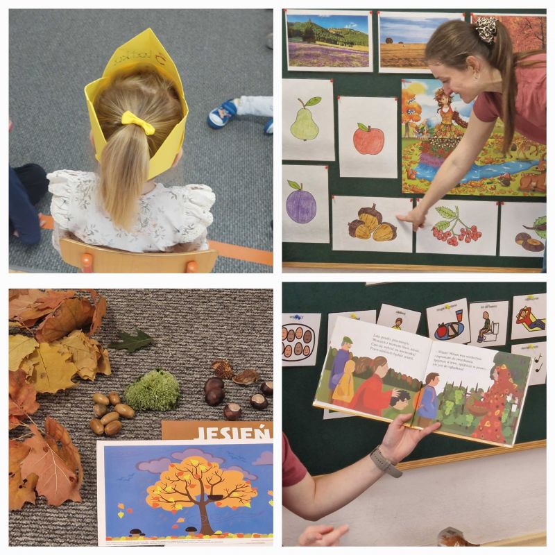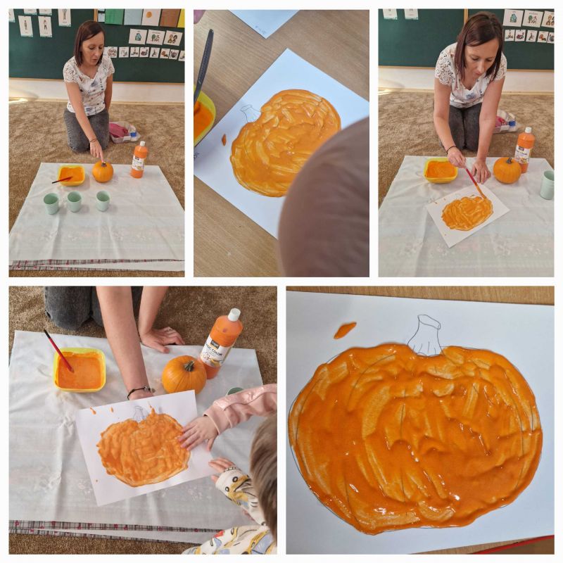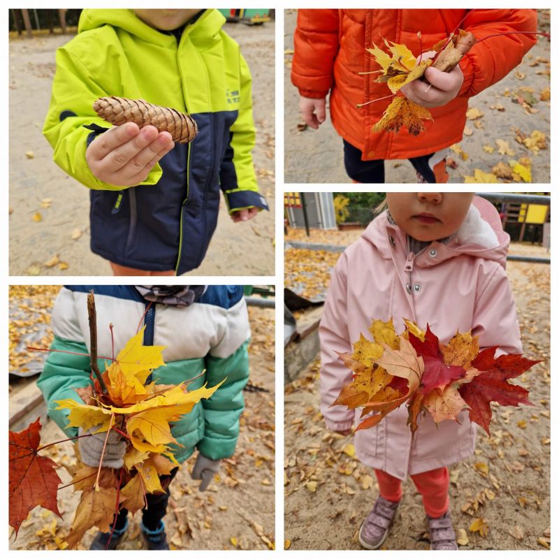 W październiku dzieciom towarzyszyło wiele atrakcji. Poznaliśmy aktualną porę roku, jej dary i cechy charakterystyczne. Obchodziliśmy różnorodne dni: Dzień Drzewa, Światowy Dzień Zdrowia Psychicznego, Dzień Ratownictwa Medycznego, Światowy Dzień Mycia Rąk, Dzień Kundelka czy Dzień Dyni. Oglądaliśmy występ z okazji Dnia Edukacji Narodowej, przygotowany przez dzieci ze starszych grup oraz sami mieliśmy bardzo ważne wydarzenie, Uroczystość Pasowania na Przedszkolaka. Obchodziliśmy pierwsze w grupie urodziny. Ciocie zorganizwały nam dzień zdrowego śniadania, podczas którego mogliśmy samodzielnie komponować swoje pyszne kanapki. Pod koniec miesiąca braliśmy udział w akcji MEN "Szkoła Pamięta".