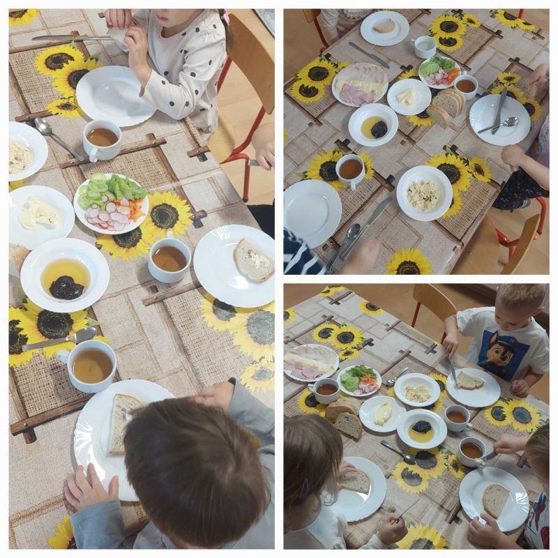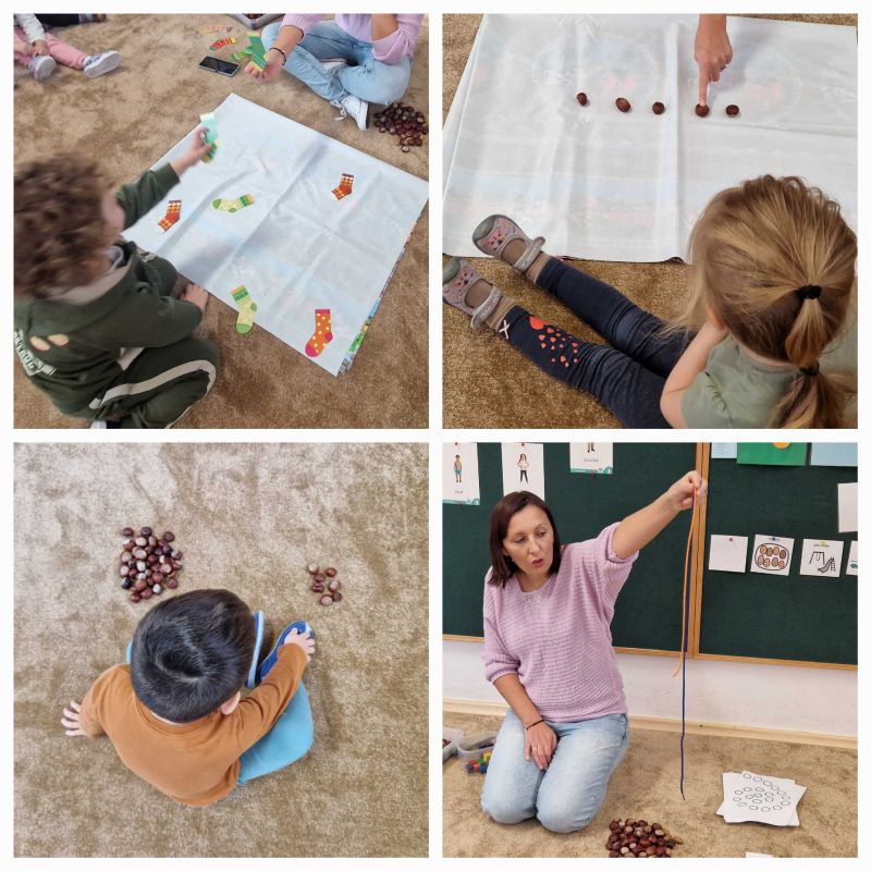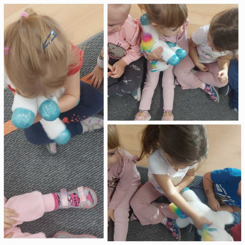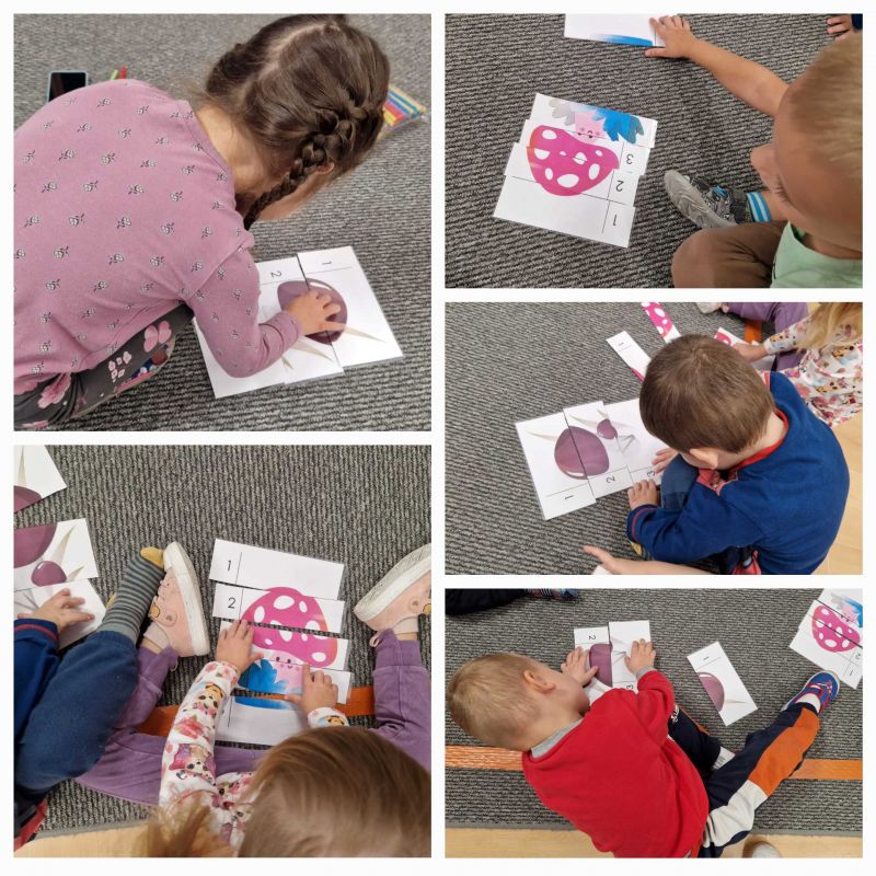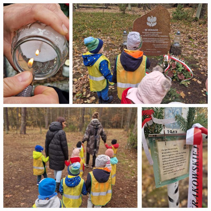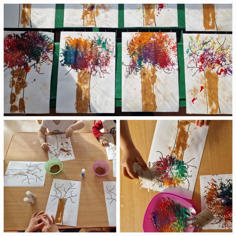 W październiku dzieciom towarzyszyło wiele atrakcji. Poznaliśmy aktualną porę roku, jej dary i cechy charakterystyczne. Obchodziliśmy różnorodne dni: Dzień Drzewa, Światowy Dzień Zdrowia Psychicznego, Dzień Ratownictwa Medycznego, Światowy Dzień Mycia Rąk, Dzień Kundelka czy Dzień Dyni. Oglądaliśmy występ z okazji Dnia Edukacji Narodowej, przygotowany przez dzieci ze starszych grup oraz sami mieliśmy bardzo ważne wydarzenie, Uroczystość Pasowania na Przedszkolaka. Obchodziliśmy pierwsze w grupie urodziny. Ciocie zorganizwały nam dzień zdrowego śniadania, podczas którego mogliśmy samodzielnie komponować swoje pyszne kanapki. Pod koniec miesiąca braliśmy udział w akcji MEN "Szkoła Pamięta".