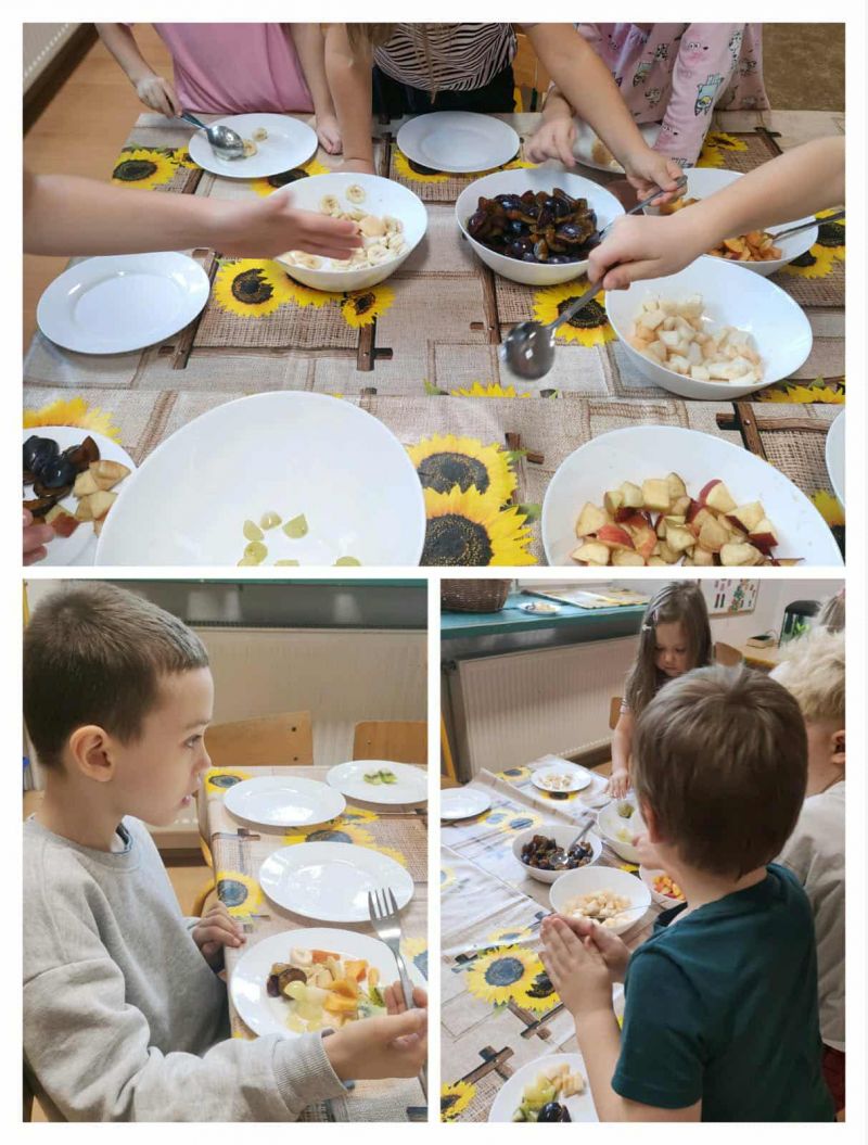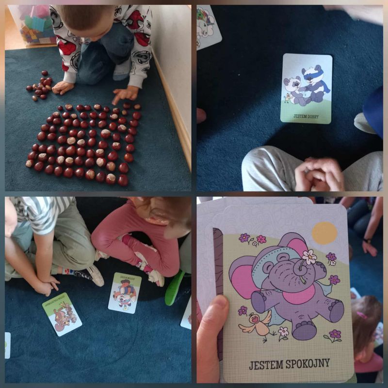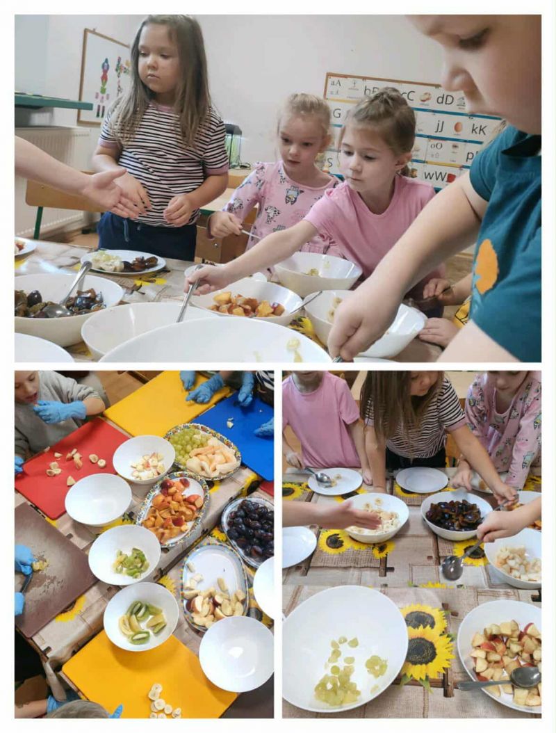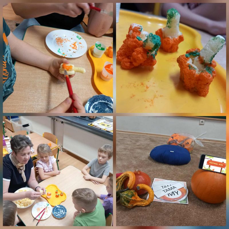 Jesień mija nam szybko, intensywnie, twórczo i zdrowo. Ćwiczymy uważność z pomocą kart mindfullness, które pozwalają nam rozpoznać nasze wyjątkowe atrybuty. Bawimy się kreatywnie z wykorzystaniem jesiennych podarków. Dbamy o zdrowie, dzięki samodzielnie przyrządzanym śniadaniom i sałatkom owocowym. Obchodzimy święta, z kalendarza świąt nietypowych (dzień dyni). Tuż przed Świętem Zmarłych oddaliśmy hołd Polakom, którzy zginęli w lasach Bukowiec podczas II wojny światowej.