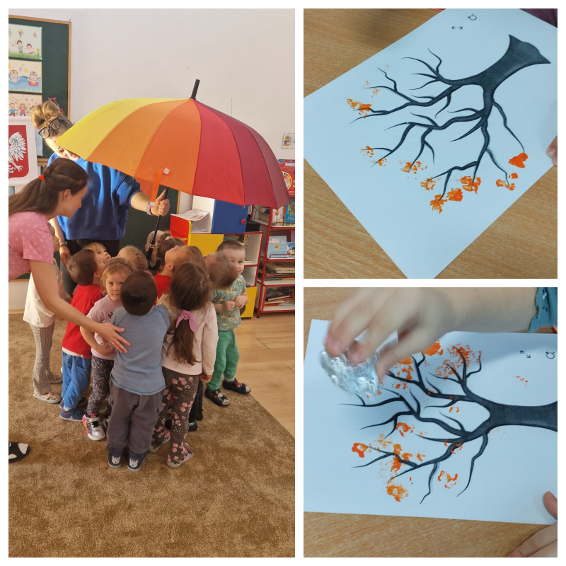 W listopadzie dzieci utrwalały znajomość pór roku oraz cechy charakterystyczne jesieni. Obserwowały pogodę, przyrodę oraz uczyły się odpowiednio dopasowywać ubrania w zależności od temperatury i pogody. Dostrzegały rytmiczną organizację czasu - następstwo dnia i nocy, pór roku.