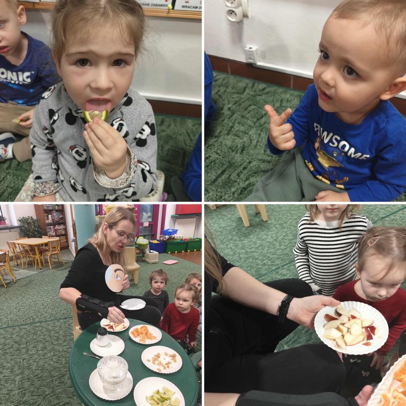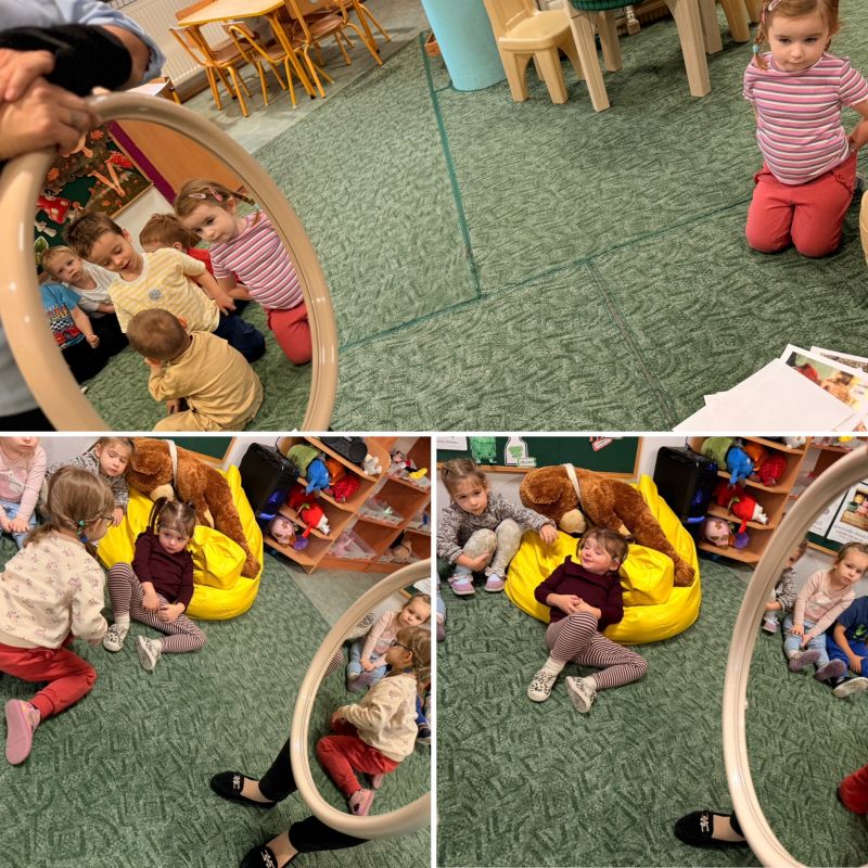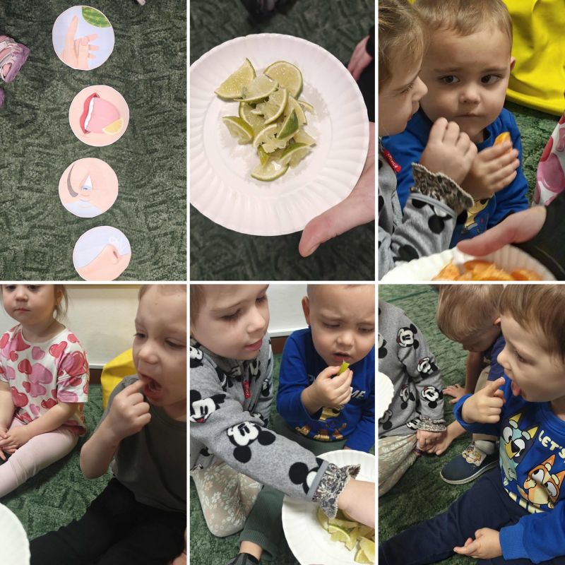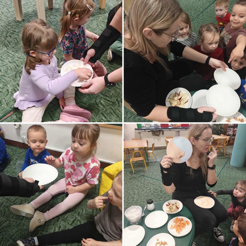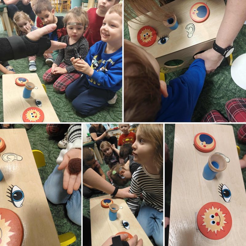 Dzieci wyruszyły w fascynującą podróż po świecie ludzkiego ciała i zmysłów. Dzieci odkrywały, jak wiele możemy dowiedzieć się o świecie dzięki smakowi, węchowi, wzrokowi, słuchowi i dotykowi. Podczas zajęć mali odkrywcy: przeglądali się w lusterkach, rozpoznając części swojego ciała, dotykali przedmiotów o różnej fakturze, ucząc się rozróżniać miękkie, twarde, chropowate i gładkie, słuchali dźwięków z otoczenia i próbowali je odgadnąć, poznawali różne zapachy – przyjemne i mniej lubiane, próbowali smaków: słodkiego, kwaśnego, słonego i gorzkiego, ucząc się je nazywać. Zabawy sensoryczne sprawiły dzieciom wiele radości i pozwoliły im lepiej poznać siebie oraz otaczający świat. Trzylatki chętnie badały, porównywały i dzieliły się swoimi spostrzeżeniami.