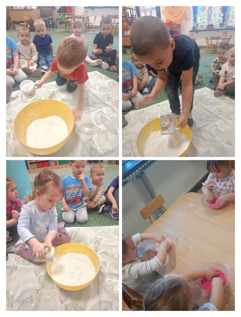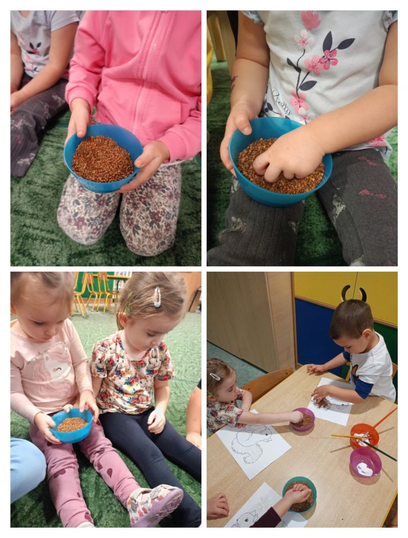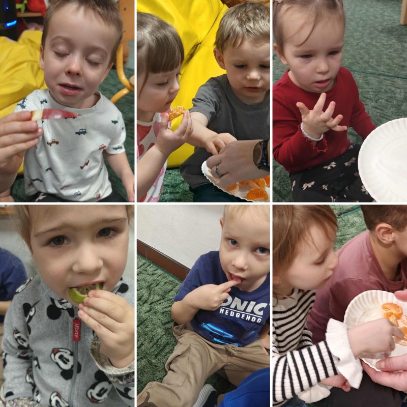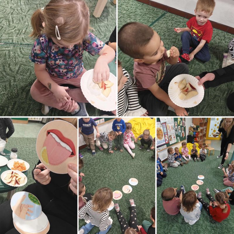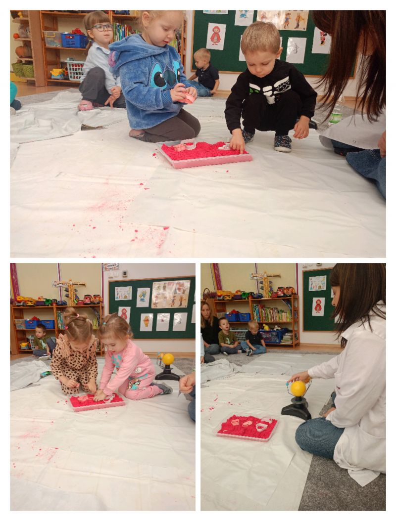 Dzieci wyruszyły w fascynującą podróż po świecie ludzkiego ciała i zmysłów. Dzieci odkrywały, jak wiele możemy dowiedzieć się o świecie dzięki smakowi, węchowi, wzrokowi, słuchowi i dotykowi. Podczas zajęć mali odkrywcy: przeglądali się w lusterkach, rozpoznając części swojego ciała, dotykali przedmiotów o różnej fakturze, ucząc się rozróżniać miękkie, twarde, chropowate i gładkie, słuchali dźwięków z otoczenia i próbowali je odgadnąć, poznawali różne zapachy – przyjemne i mniej lubiane, próbowali smaków: słodkiego, kwaśnego, słonego i gorzkiego, ucząc się je nazywać. Zabawy sensoryczne sprawiły dzieciom wiele radości i pozwoliły im lepiej poznać siebie oraz otaczający świat. Trzylatki chętnie badały, porównywały i dzieliły się swoimi spostrzeżeniami.