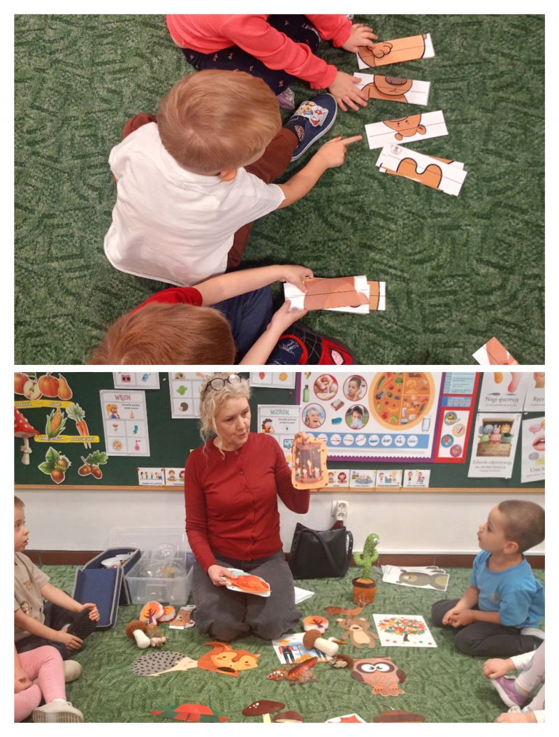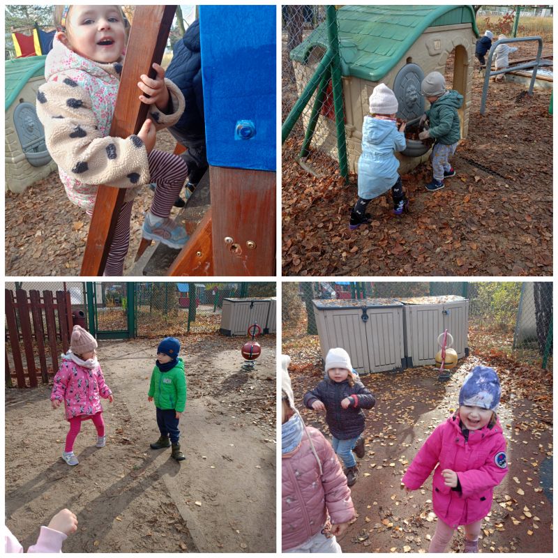 Nie zabrakło również czasu na ruch i swobodną aktywność – dzieci chętnie korzystały z placu zabaw, ciesząc się jesienną aurą i wspólną zabawą na świeżym powietrzu.