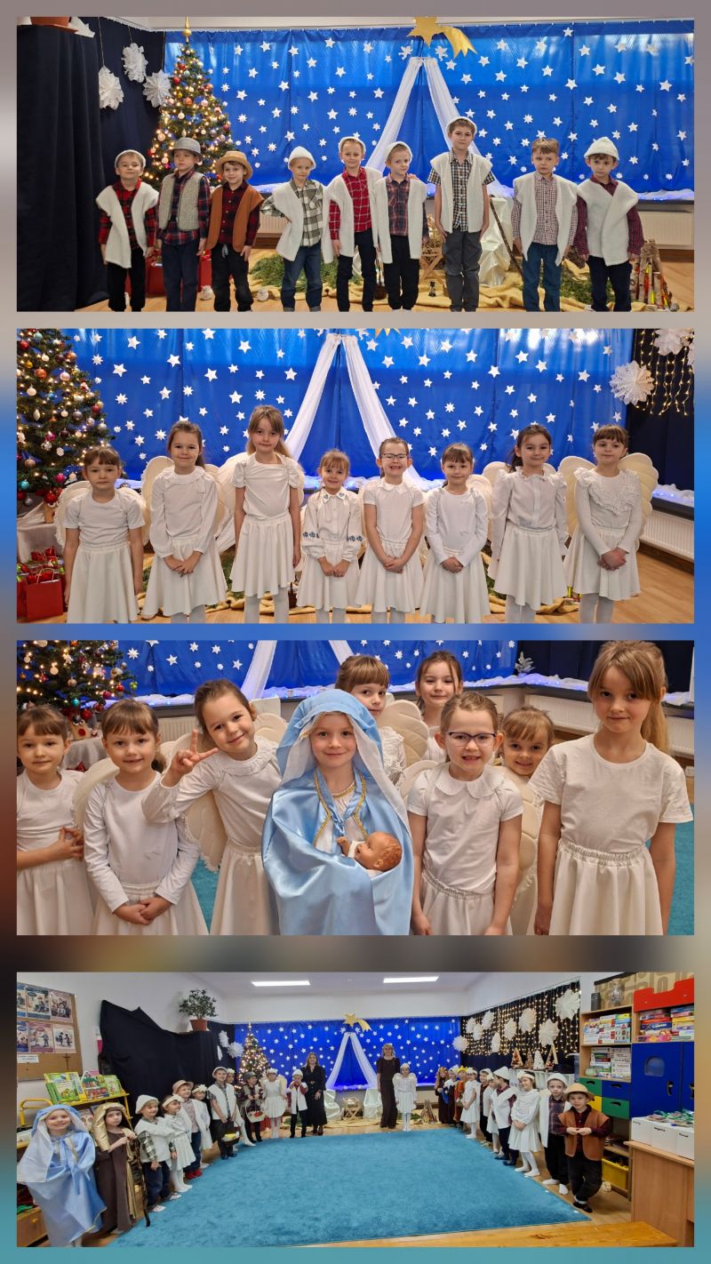 W pięknych strojach przedstawiły historię narodzin Dzieciątka Jezus, oprawioną znanymi kolędami i pastorałkami. Podczas występów na twarzach rodziców zauważyć można było nie tylko uśmiech, radość, ale i wzruszenie. Gromkie brawa były najlepszym podziękowaniem dla małych Artystów za ich starania i ciężką pracę nad przygotowaniem Jasełek.