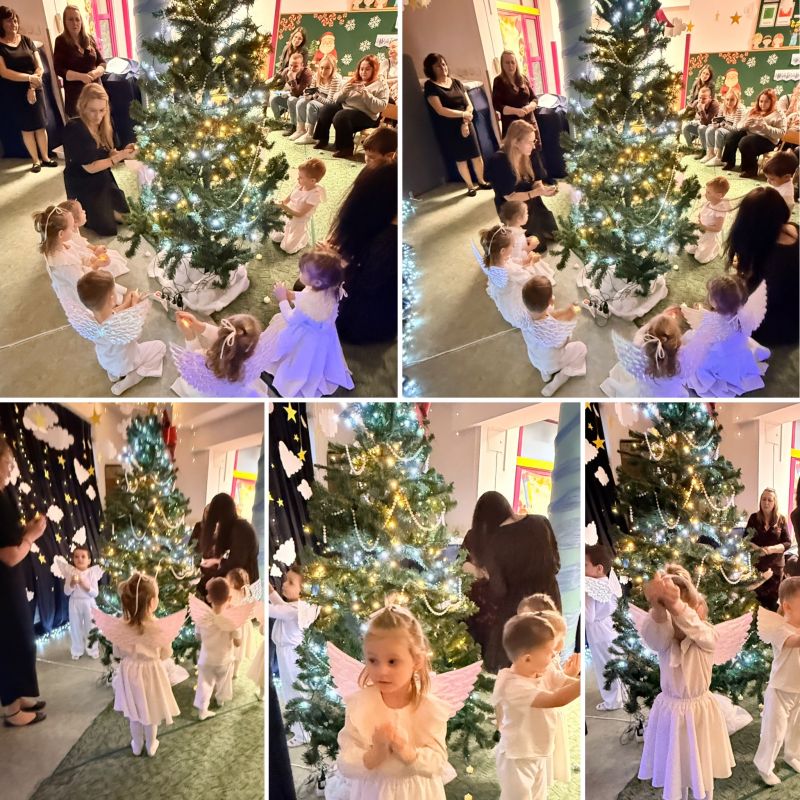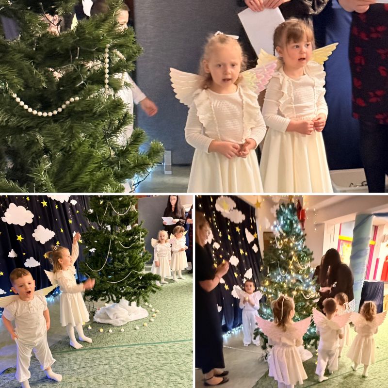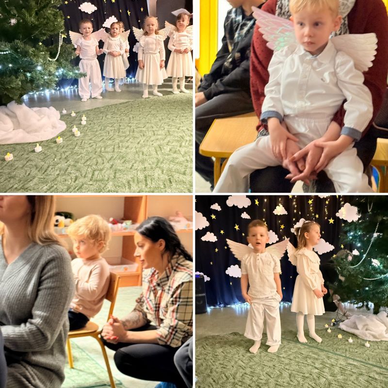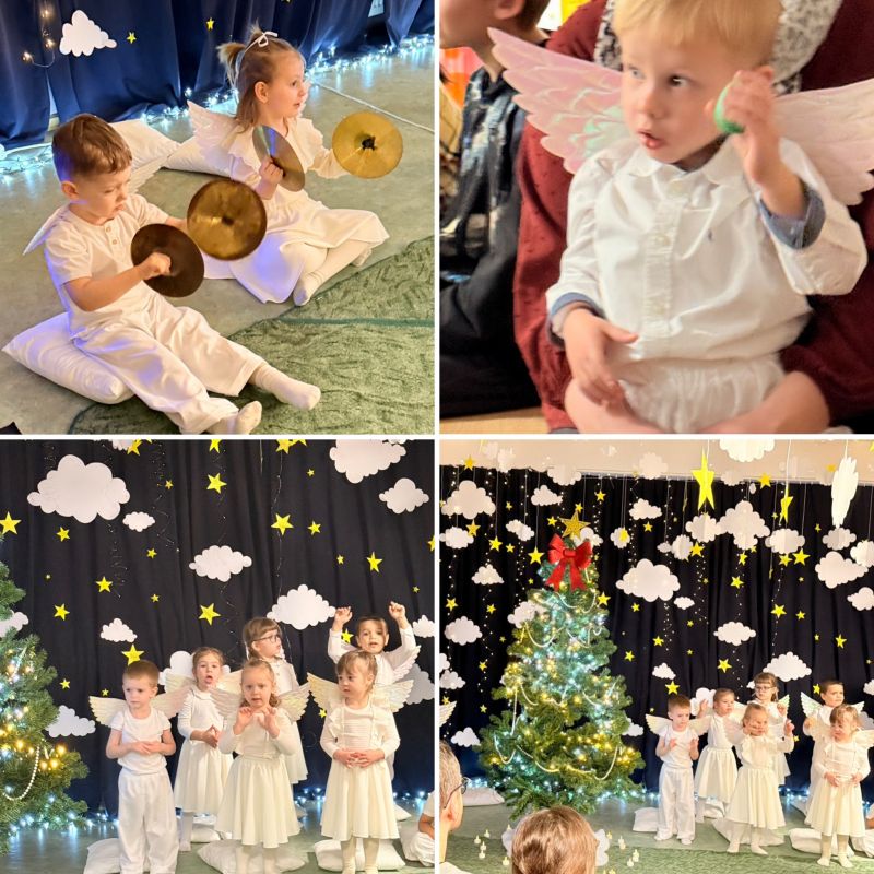 Świąteczny czas w naszej grupie trzylatków wypełnił się wyjątkowym ciepłem, radością i wzruszeniem. Najmłodsze przedszkolaki zaprezentowały swoje pierwsze tak ważne przedstawienie świąteczne pt. „Aniołki, które wysyłają dobro”.