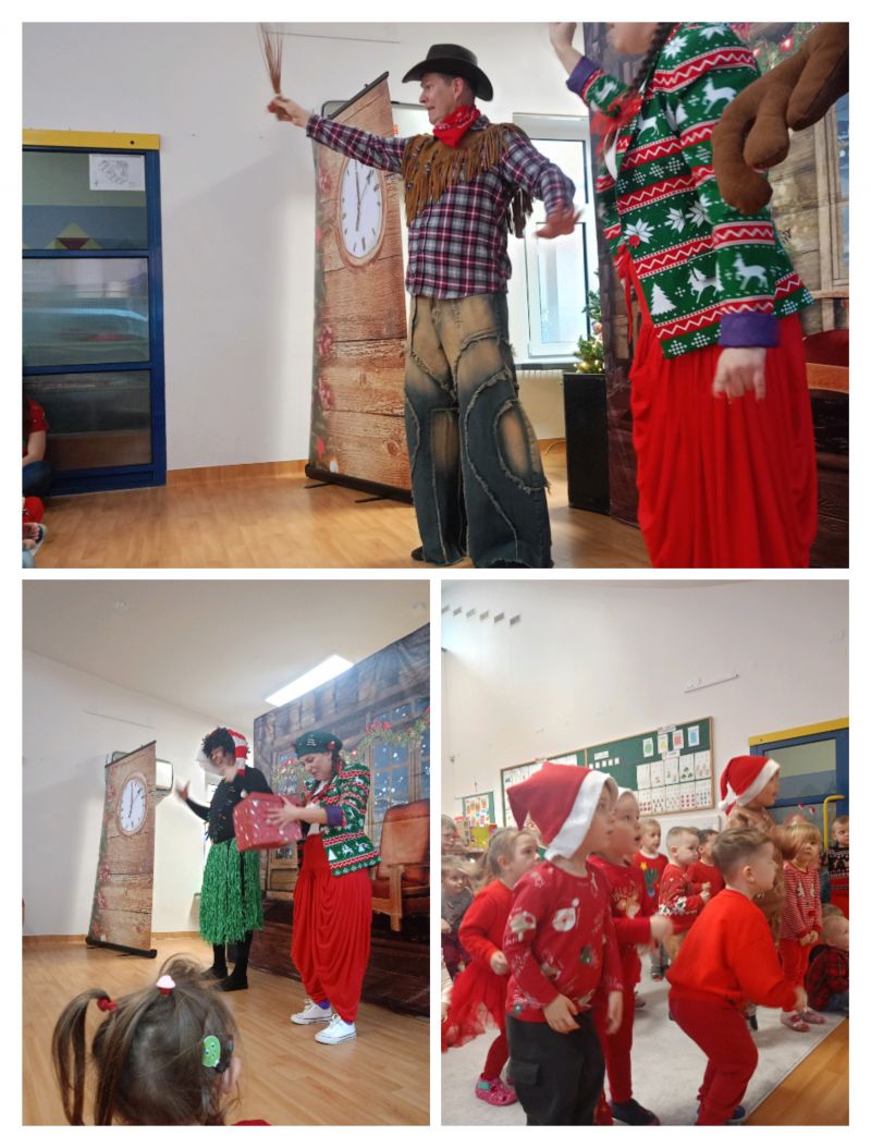 W grudniowej, świątecznej atmosferze dzieci miały okazję obejrzeć teatrzyk o Świętym Mikołaju. Barwne postacie, ciekawa fabuła oraz wesoła muzyka wzbudziły duże zainteresowanie wśród przedszkolaków. Po przedstawieniu dzieci spotkały się z Mikołajem, który przygotował dla nich miłe niespodzianki. Był to dzień pełen uśmiechów, radości, pozytywnych emocji oraz niezapomnianych wrażeń.