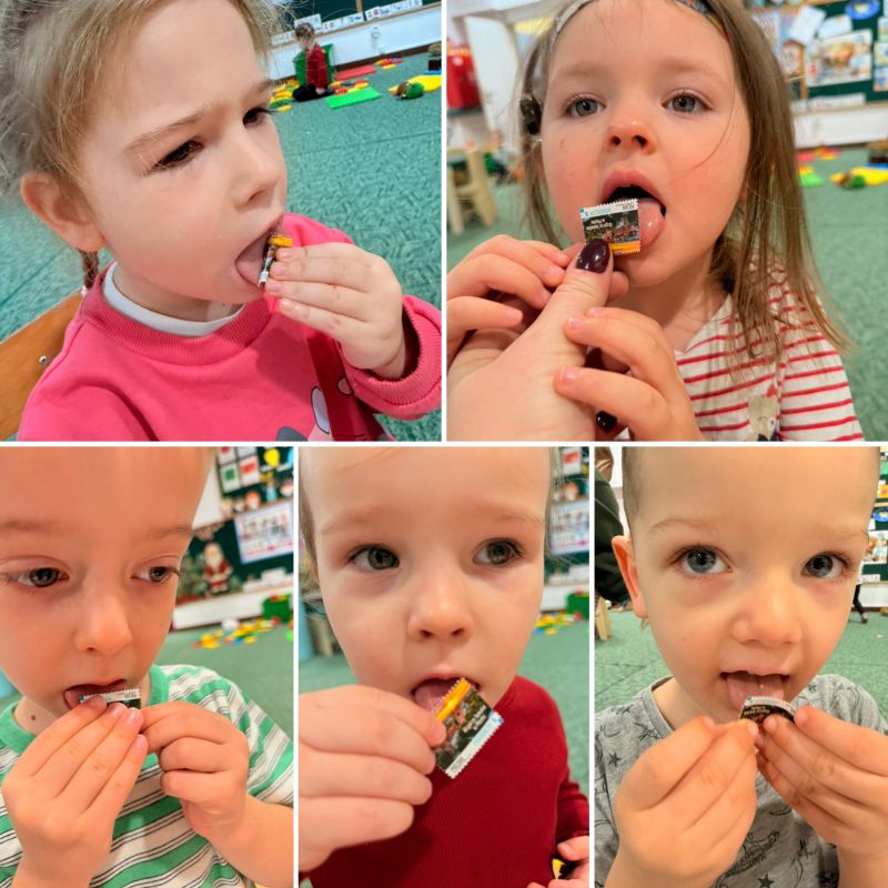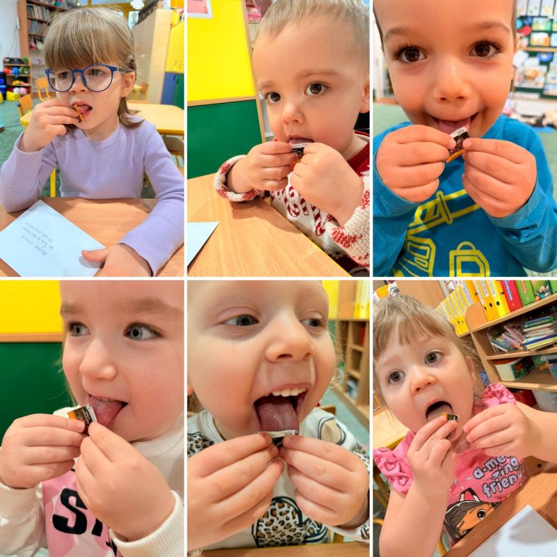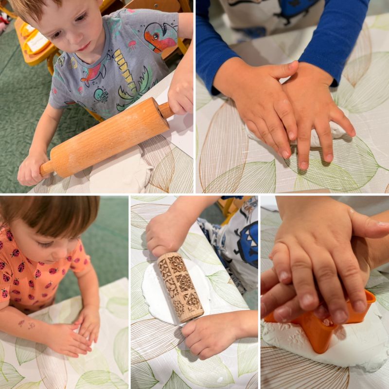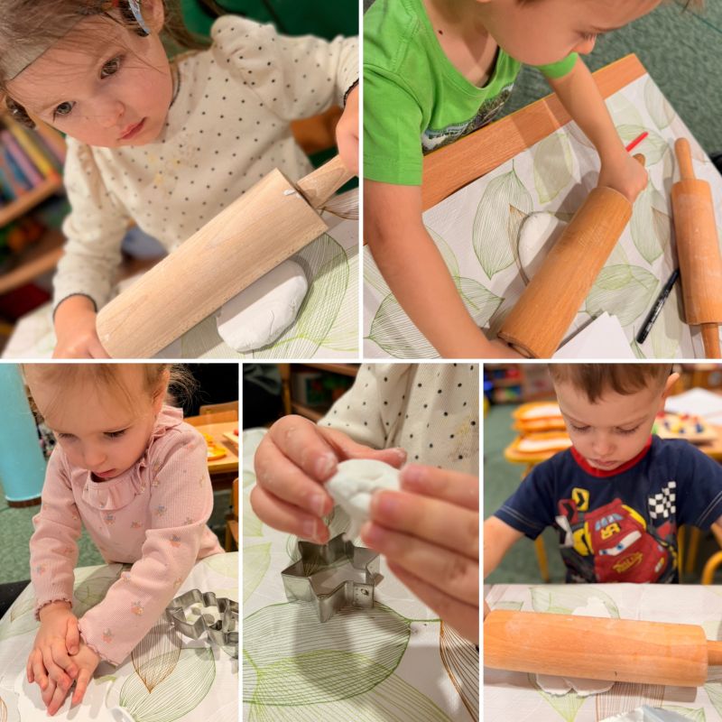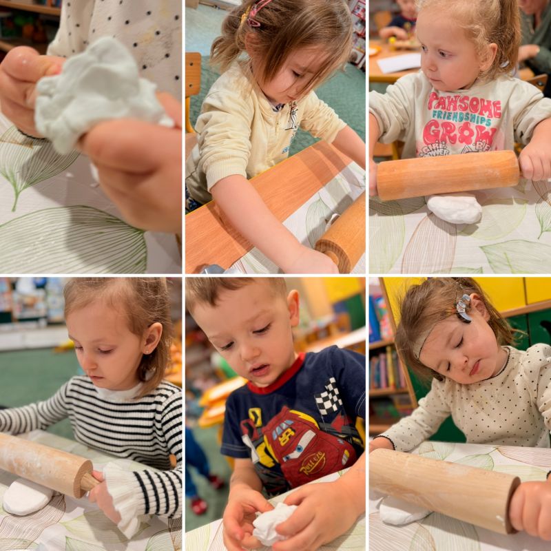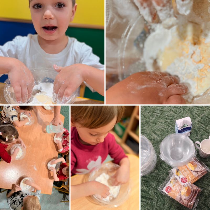 Dzieci uczestniczyły w zajęciach sensoplastycznych, podczas których samodzielnie tworzyły ciastolinę z budyniu. Zabawy masą dostarczały wielu bodźców sensorycznych – dzieci ugniatały, wałkowały i formowały masę, doświadczając różnorodnych faktur oraz przyjemnych doznań zapachowych, pobudzających zmysły.