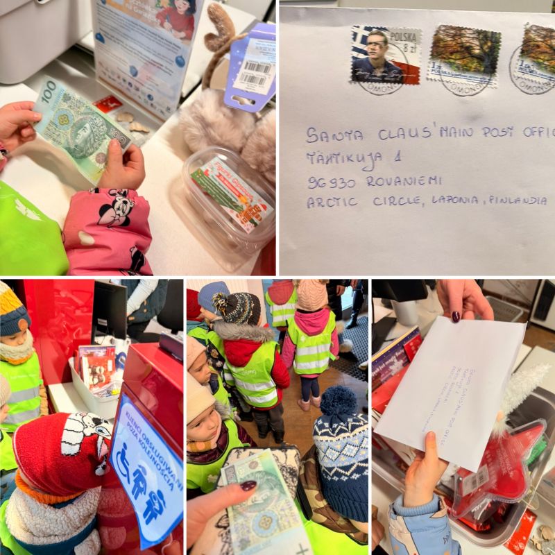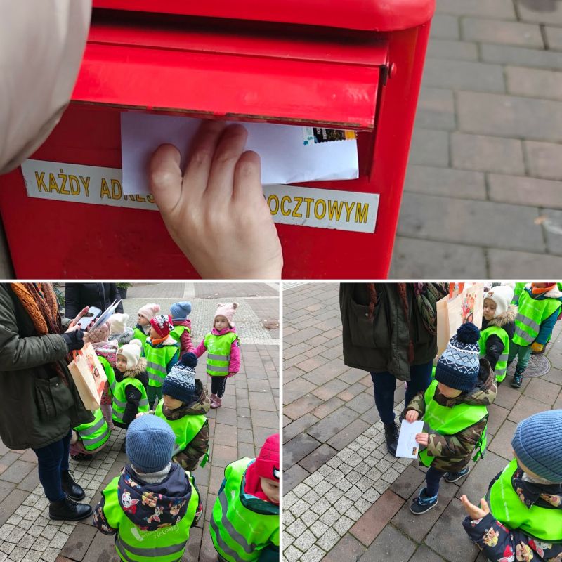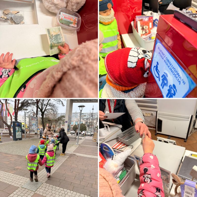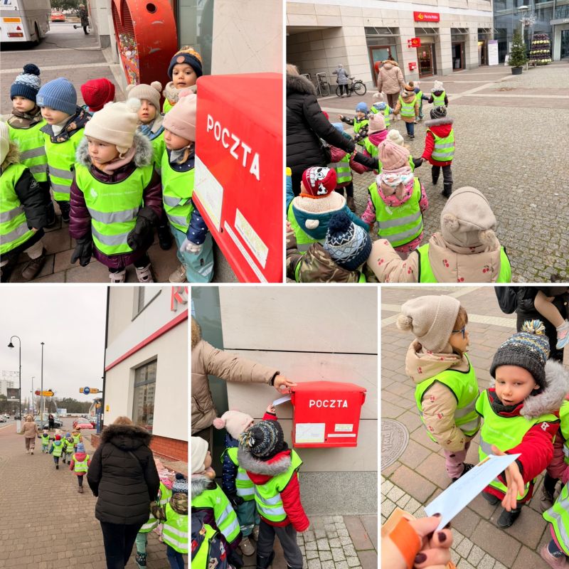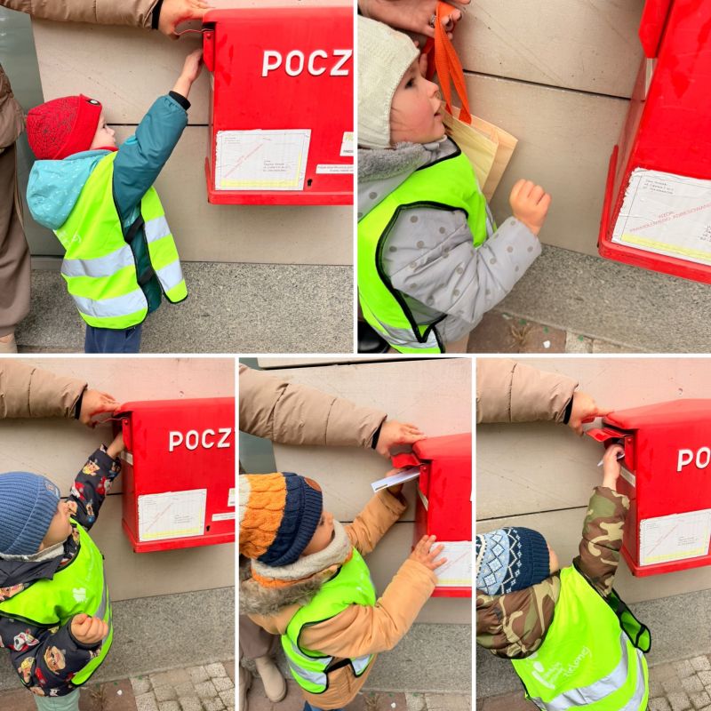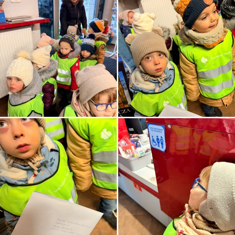 Podczas wycieczki na pocztę dzieci miały okazję zobaczyć, jak wygląda placówka pocztowa oraz dowiedzieć się, w jaki sposób wysyłane są listy i kartki. Wyjście było ciekawym doświadczeniem społecznym i edukacyjnym.