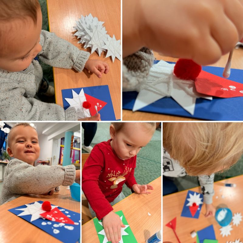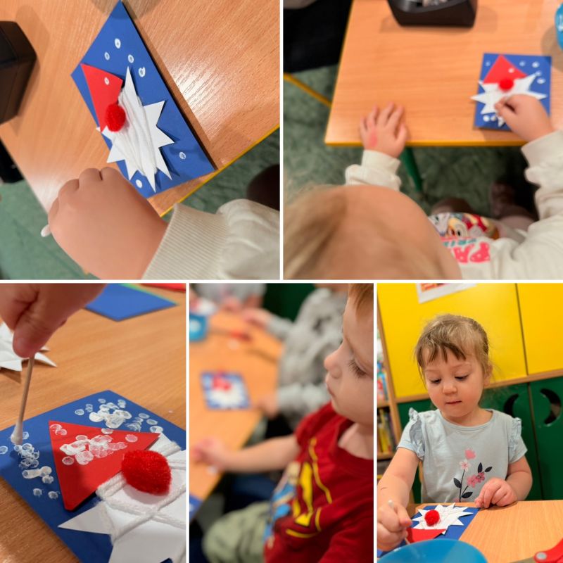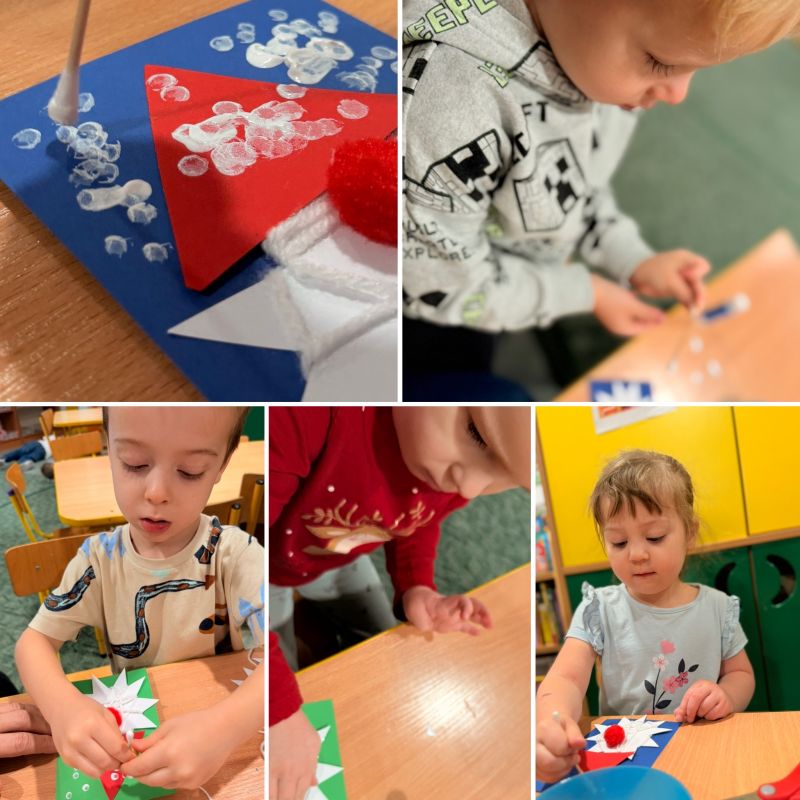 Dzieci przygotowały kartki świąteczne dla seniorów, ucząc się empatii, życzliwości i wrażliwości na potrzeby innych. Działanie to miało na celu kształtowanie postaw prospołecznych już od najmłodszych lat.