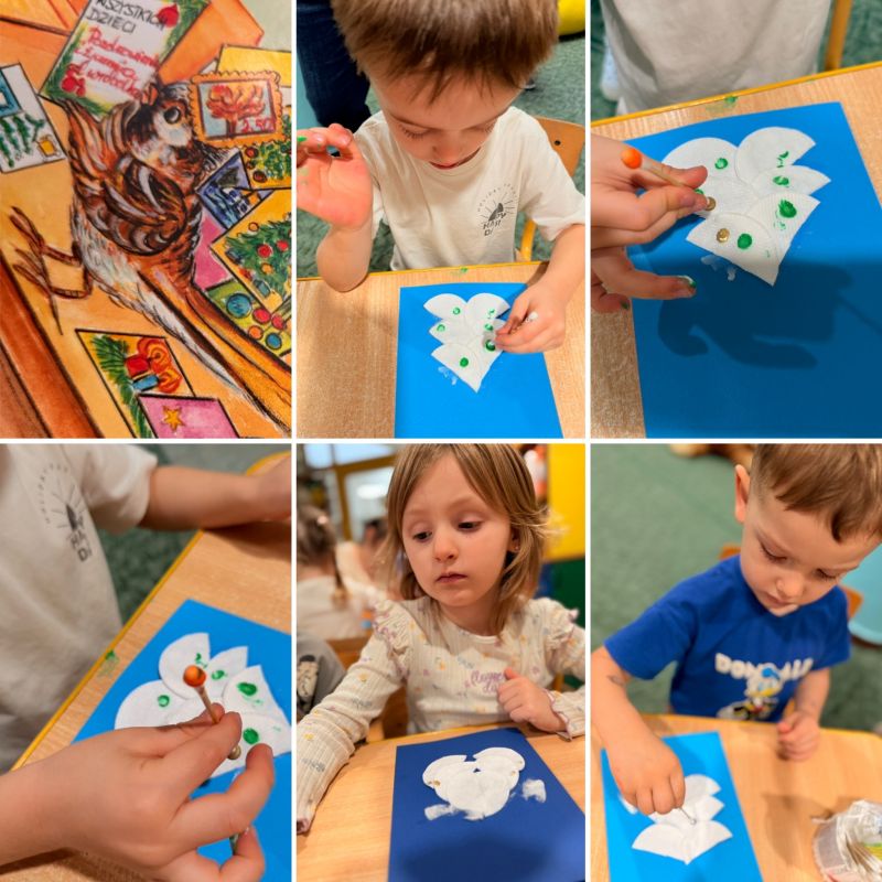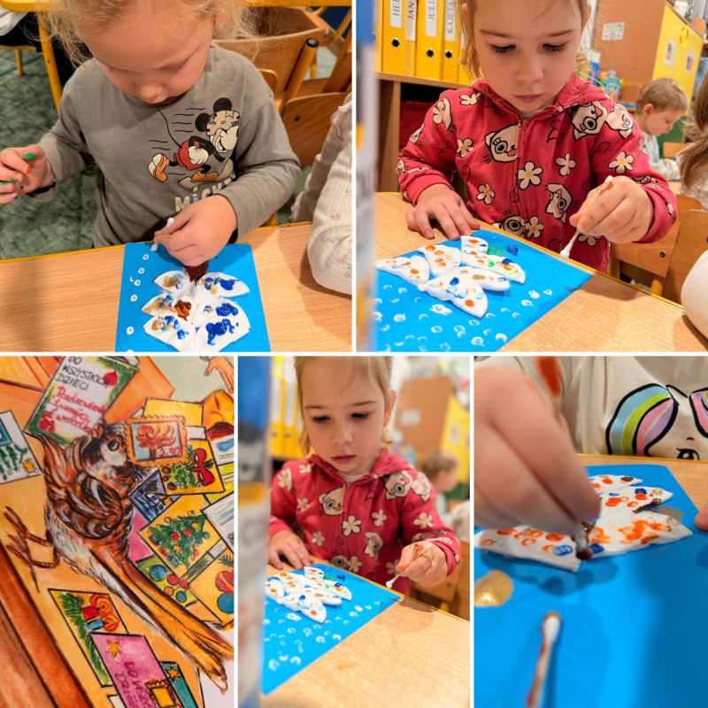Przedszkolaki wykonały własnoręcznie kartki dla rodziców, wkładając w nie dużo radości i zaangażowania. Następnie dzieci wspólnie wysłały kartki pocztą, poznając drogę listu oraz pracę listonosza.
