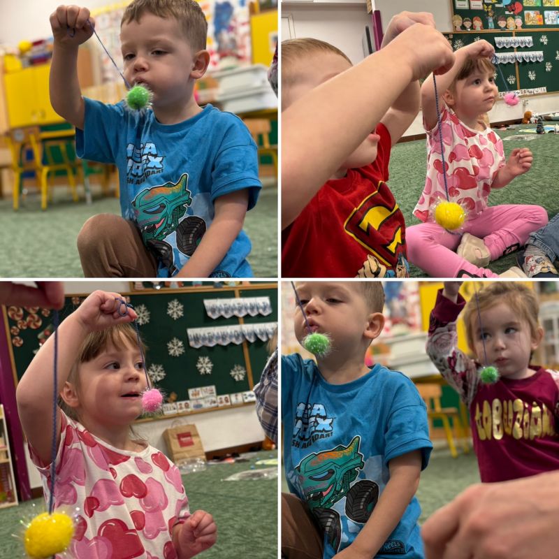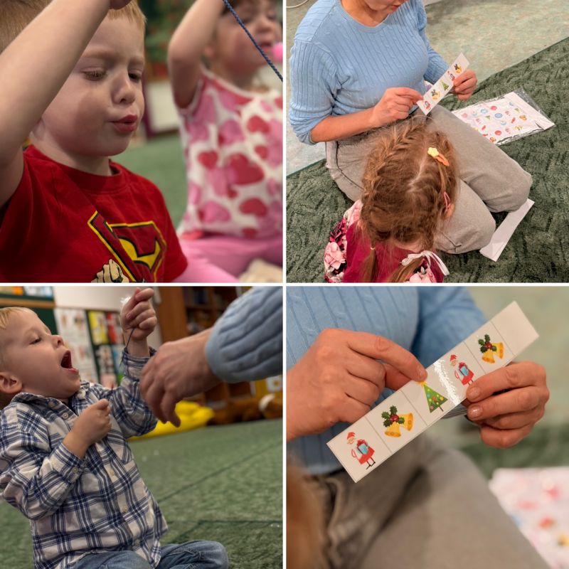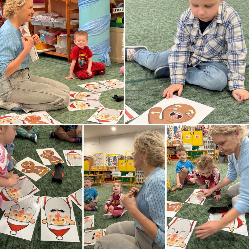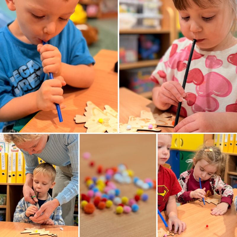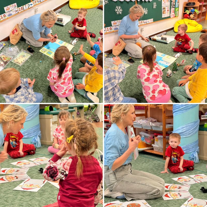 Podczas zajęć z panią Ulą dzieci uczestniczyły w zabawach logopedycznych wspierających rozwój mowy. Ćwiczenia oddechowe, artykulacyjne i słuchowe były prowadzone w formie zabawy, dostosowanej do wieku i możliwości dzieci.