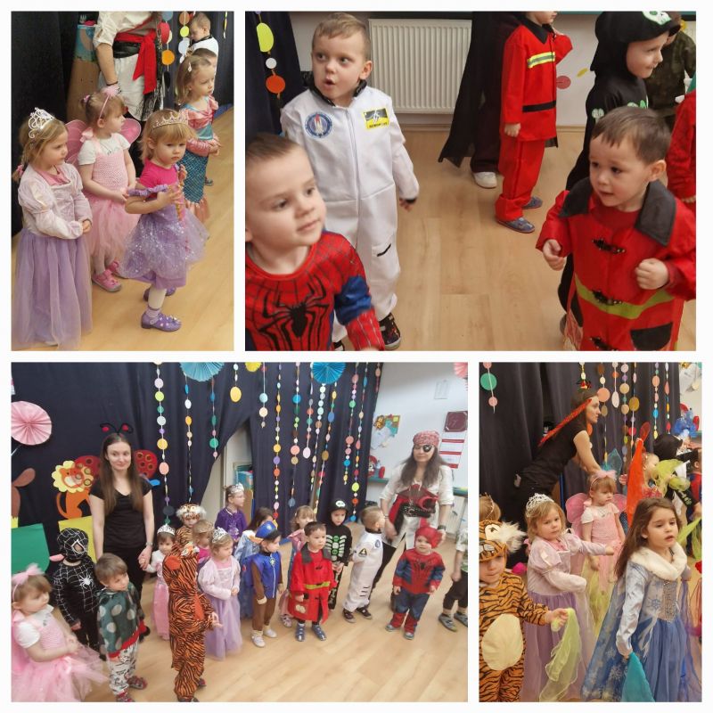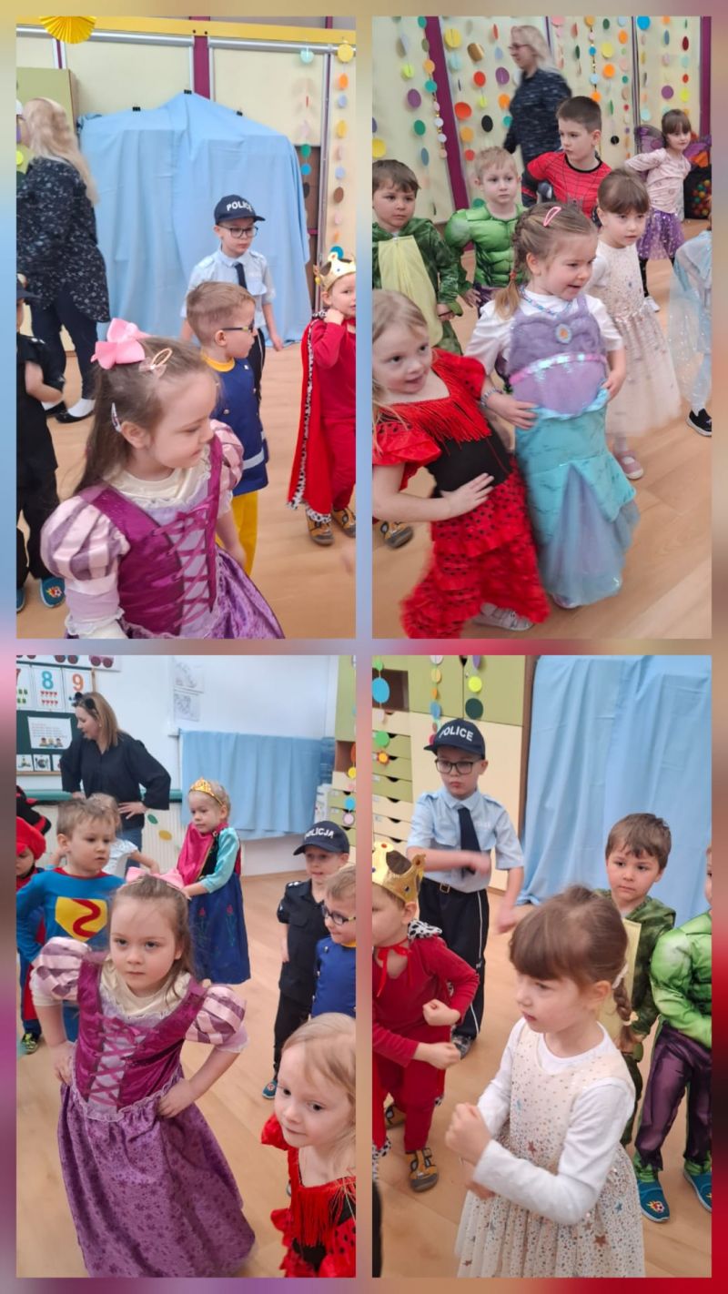 Karnawał w gronie przedszkolnych przyjaciół! Uśmiechów i śmiechu nie było końca! Przy wesołej muzyce, w atmosferze radości, w fantastycznych humorach bawili się nasi pomysłowi przebierańcy... Nie zabrakło Księżniczek, Rycerzy, Wróżek, Policjantów, Superbohaterów, Rajdowców, Dalmatyńczyków, Bohaterów Psiego Patrolu, Szkieletora i wielu, wielu innych... Trudno było rozpoznać również Ciocie;) Atrakcyjne propozycje różnych zabaw karnawałowych dostarczyły naszym Gwiazdom emocjonujących wrażeń!