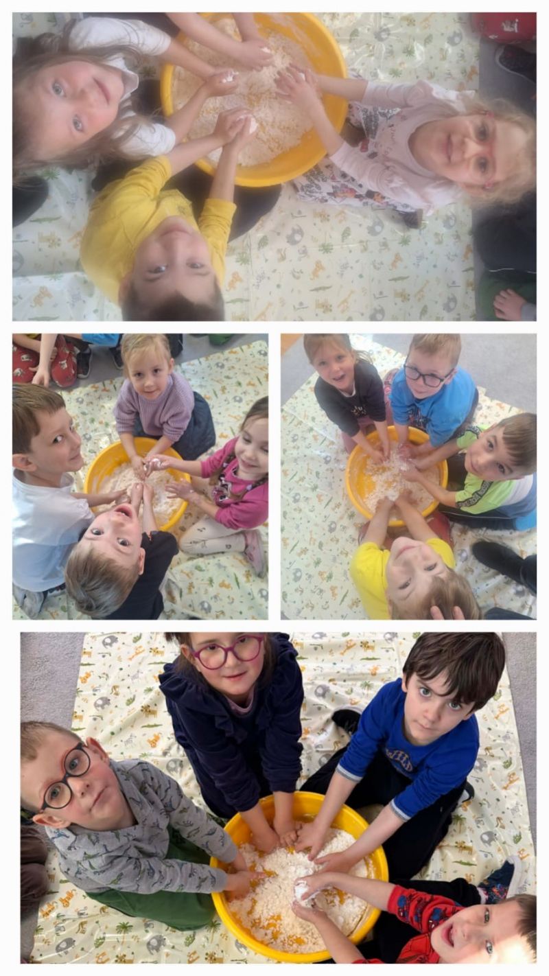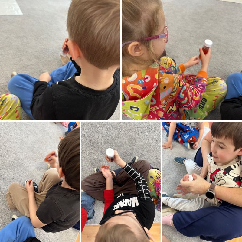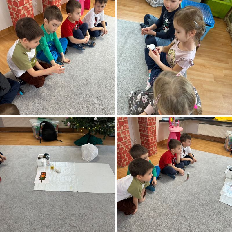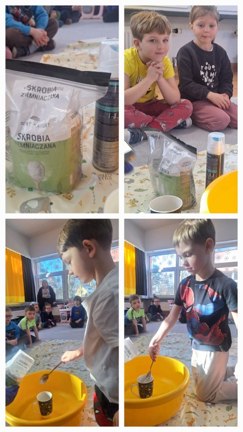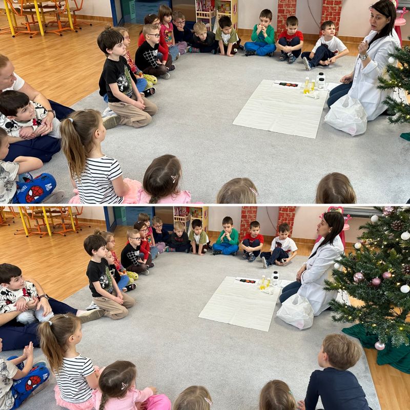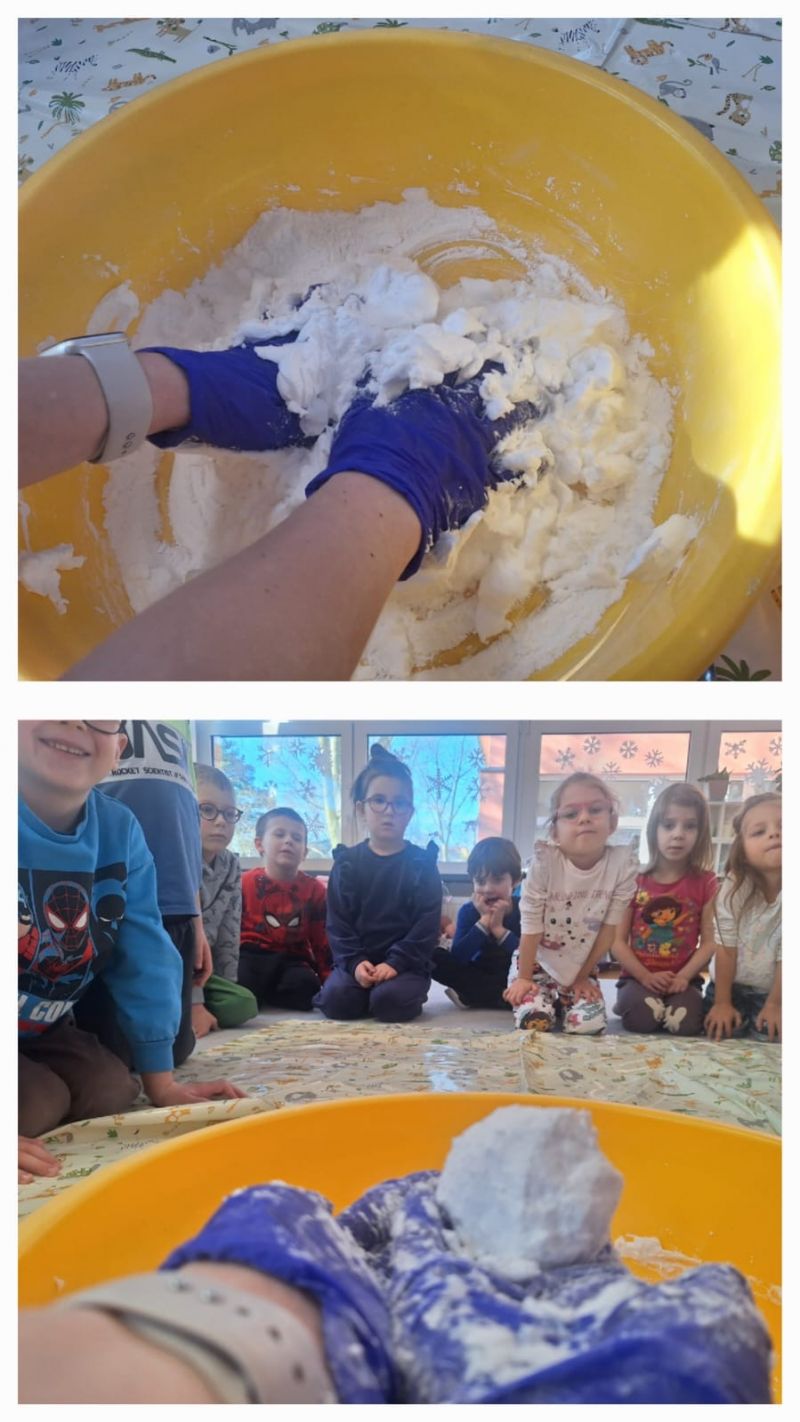 Dzieci miały także okazję uczestniczyć w kreatywnych zabawach ze sztucznym śniegiem, które dostarczyły im wielu sensorycznych wrażeń. Podczas spotkań z naukowcem Labolkiem przedszkolaki wcieliły się w małych badaczy – wykonywały odciski palców i poznawały tajniki pracy detektywa, rozwijając swoją ciekawość świata i umiejętność obserwacji