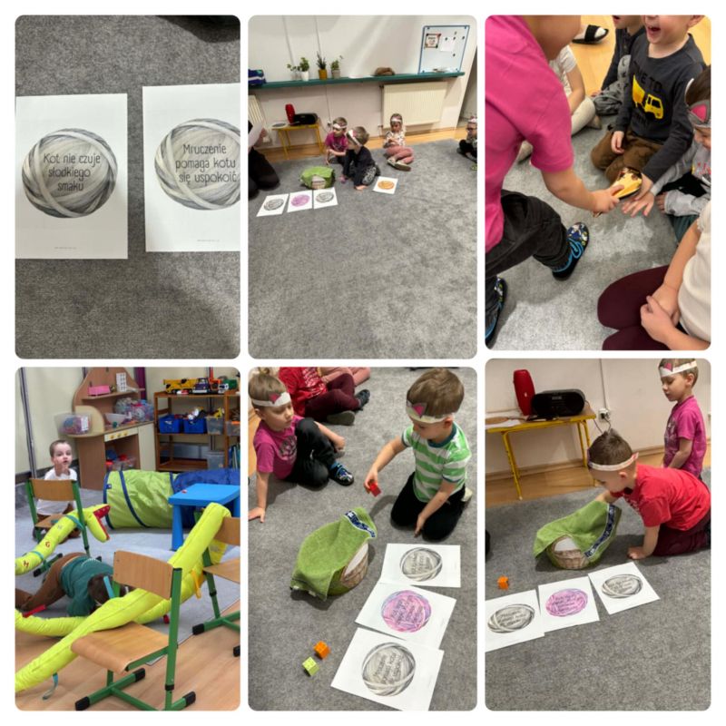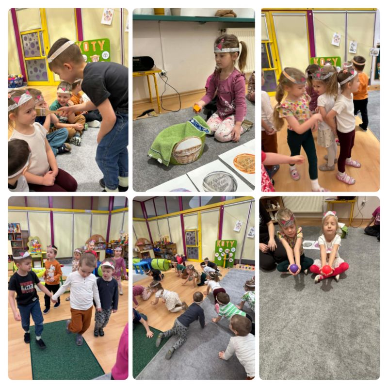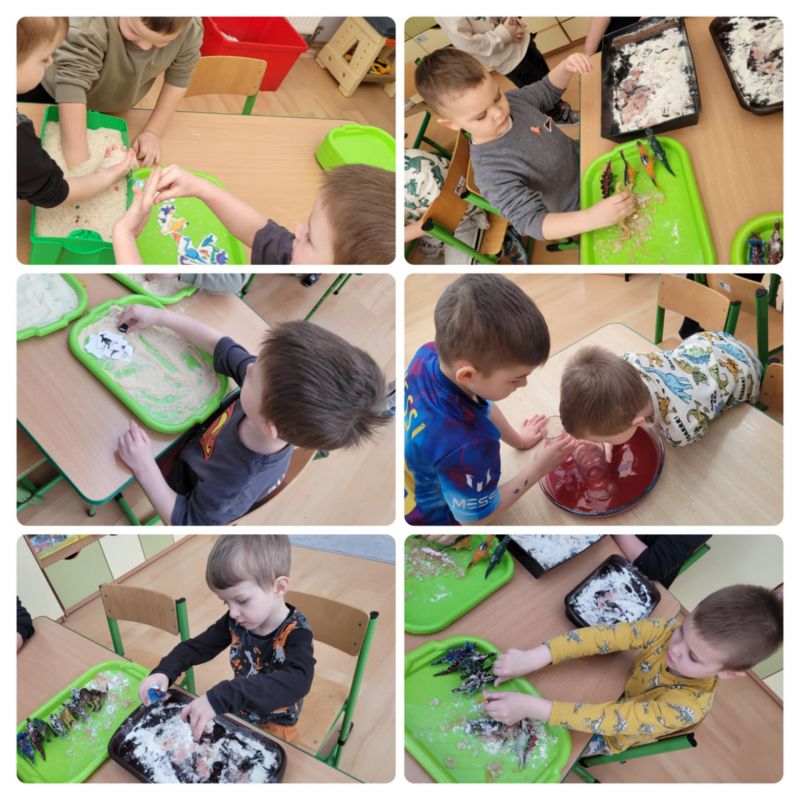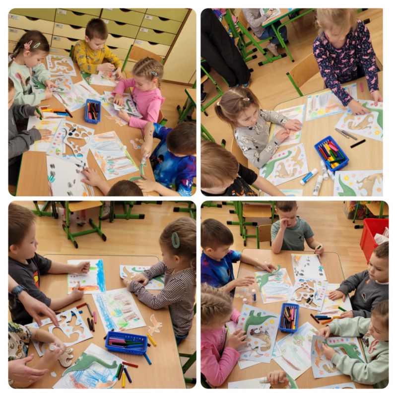 W lutym w naszej grupie nie brakowało ciekawych wydarzeń i radosnych chwil. Obchodziliśmy Dzień Kota, podczas którego rozmawialiśmy o naszych mruczących przyjaciołach i wykonywaliśmy tematyczne prace plastyczne. Z wielkim zainteresowaniem dzieci uczestniczyły także w Dniu Dinozaura, poznając świat prehistorycznych gadów.