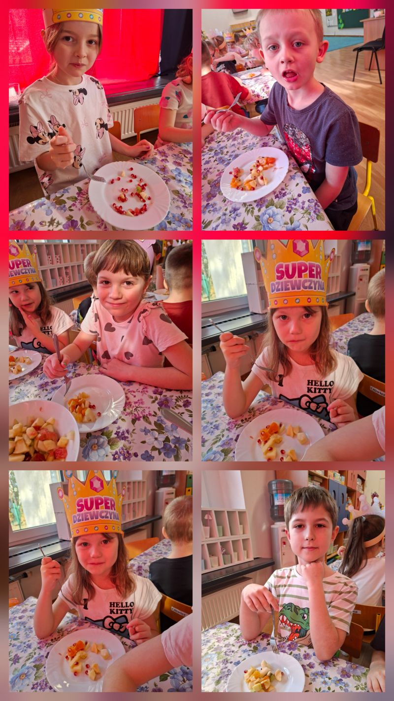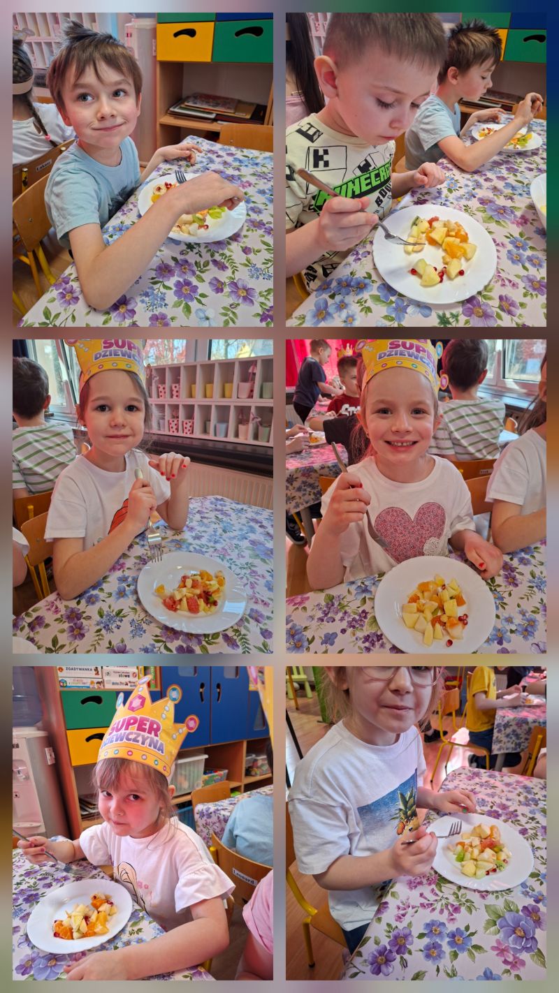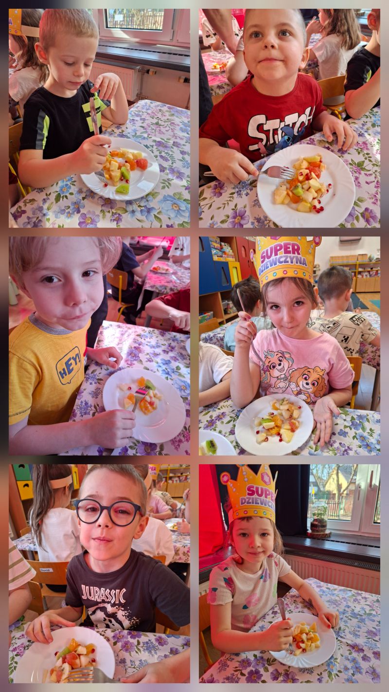 - Gramy Zmysłami „SMAK” – dzieci własnoręcznie kroiły owoce i zrobiły sałatkę owocową, którą ze smakiem zjadły.