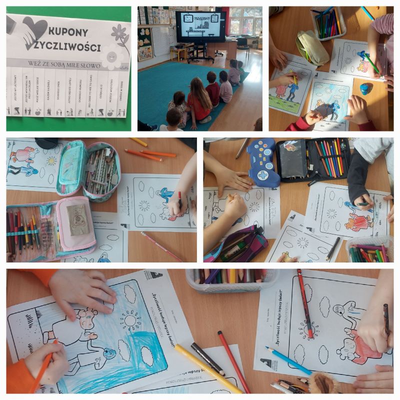 - Magiczna Moc Bajek – dzieci wykonały „Drzewko Życzliwości”, na którym były życzenia z życzliwymi pozdrowieniami. Uczestniczy w zajęciach „Jak okazywać sympatię”, podczas których rozmawiały o miłych i przykrych emocjach oraz co to jest szacunek i jak okazywać go bliskim.