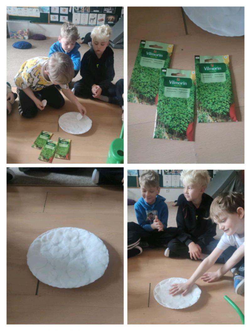 Wraz z wiosną przeobraziliśmy się w małych ogrodników. Sadząc cebulki kwiatowe i wysiewając nasiona mogliśmy doświadczać wielu przeżyć polisensorycznych, a oczekiwanie na efekty naszych prac wspomogło naszą cierpliwość i sprawiło ogromną radość z obserwacji. Wśród dni z kalendarza ważnych wydarzeń, obchodziliśmy: Światowy Dzień Wody, Dzień Kolorowej Skarpetki (jako wyraz wsparcia dla osób z zespołem Downa) oraz Dzień Świadomości Autyzmu. Mieliśmy również wielką przyjemność zmierzyć się z zadaniami podczas XXX Olimpiady matematycznej w PM 6, w której wziął udział Błażej.