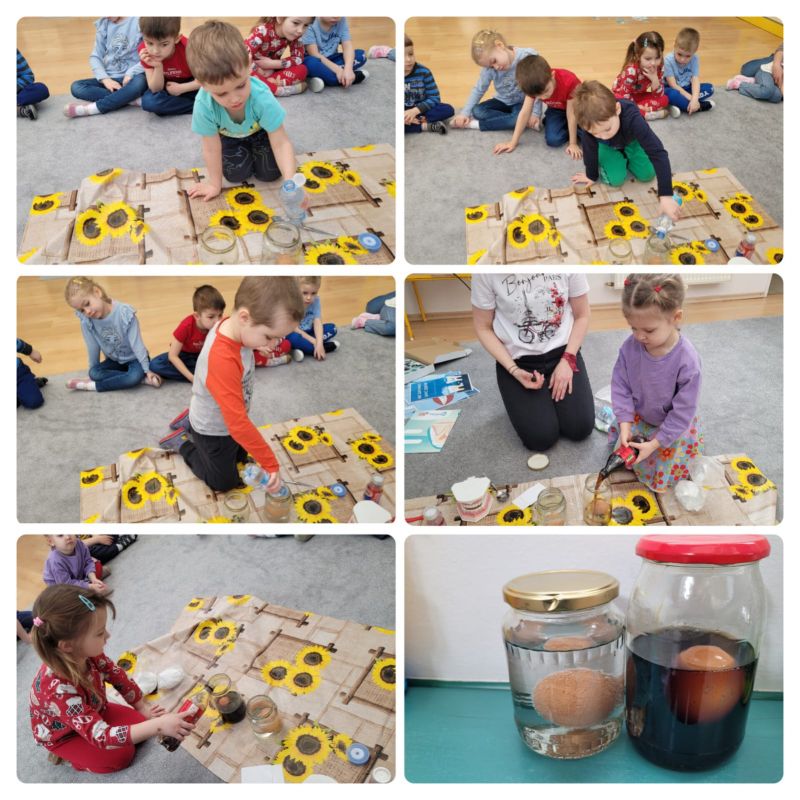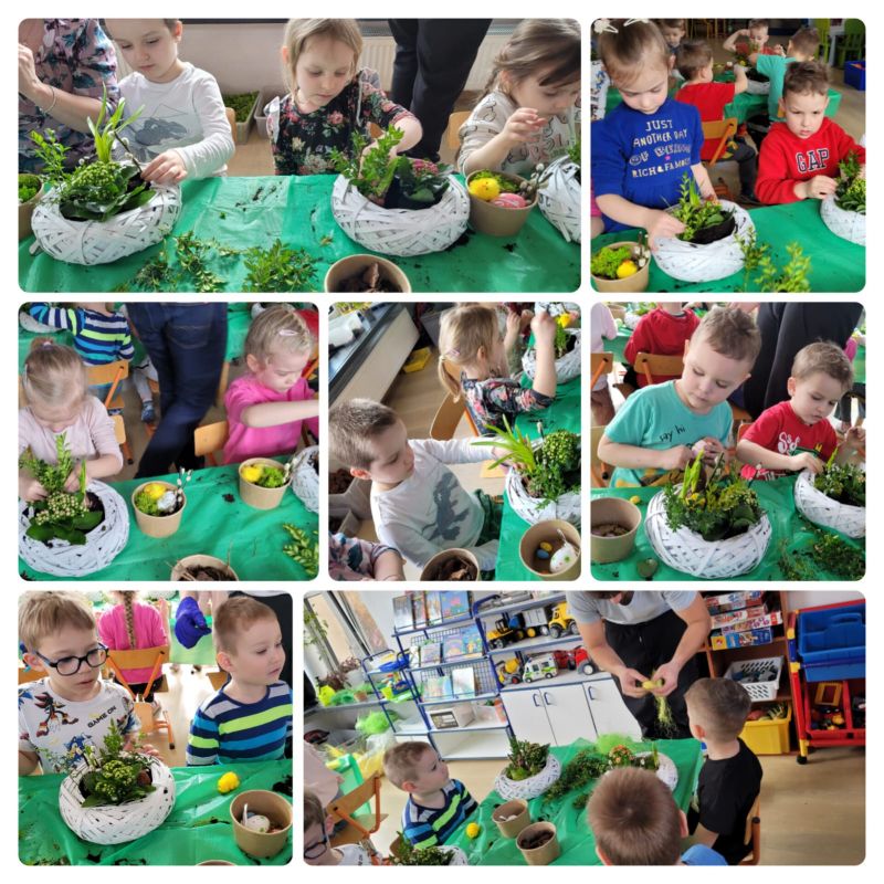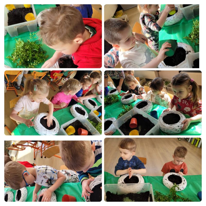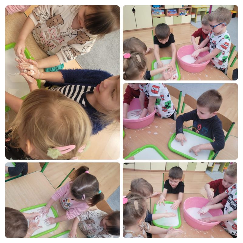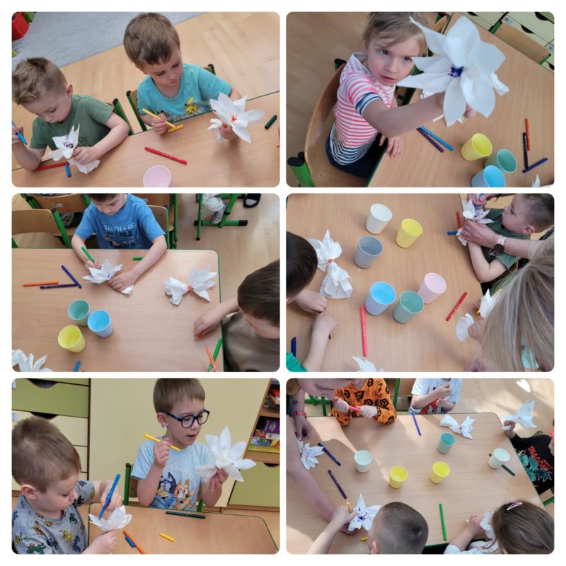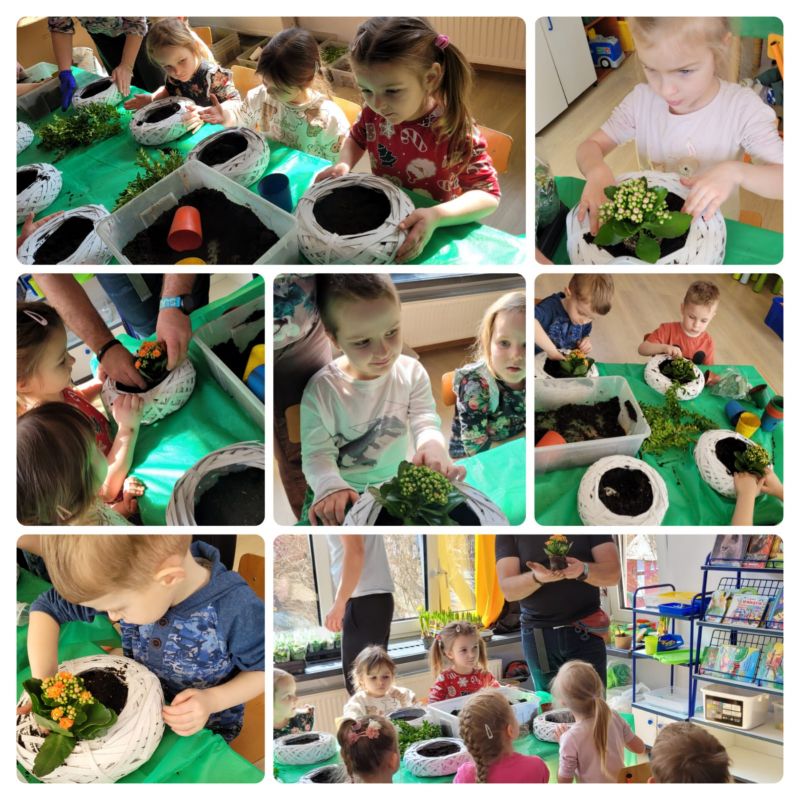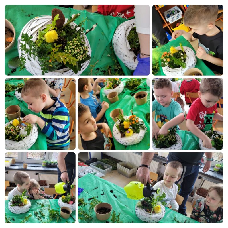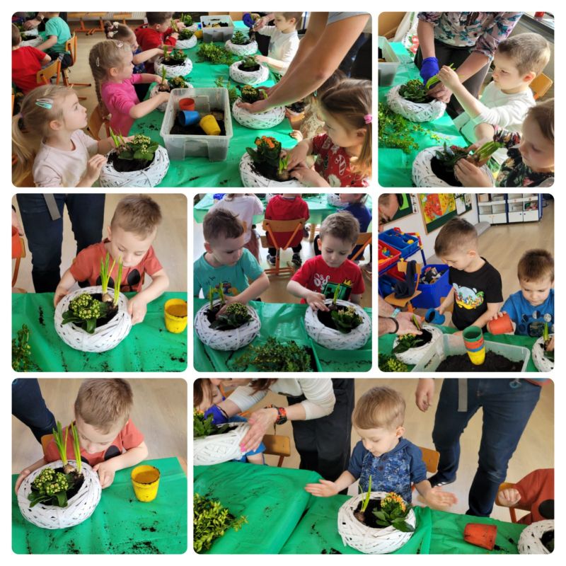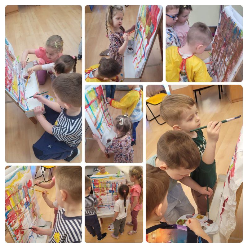 Marzec był dla naszej grupy wyjątkowo aktywny i pełen ciekawych doświadczeń. Świętowaliśmy wiele dni szczególnych: Dzień Matematyki, Dzień Dentysty, Dzień Kobiet, Dzień Kolorowej Skarpetki oraz radośnie powitaliśmy Pierwszy Dzień Wiosny. Dzięki zaangażowaniu mamy Emilki odbył się także pyszny Dzień Gofra – było słodko i bardzo wesoło! Podczas Tygodnia Eksperymentów dzieci mogły odkrywać świat poprzez doświadczenia i zabawy badawcze. Nie zabrakło również wiosennych zabaw sensorycznych, które rozwijały zmysły i wyobraźnię. Z radością sadziliśmy rośliny w ogrodzie przedszkolnym oraz tworzyliśmy piękne wielkanocne stroiki. Poznaliśmy także zawód malarza – dzieci malowały na sztalugach, rozwijając swoją kreatywność i ekspresję artystyczną. To był miesiąc pełen nauki przez zabawę, uśmiechu i wspólnych chwil.
